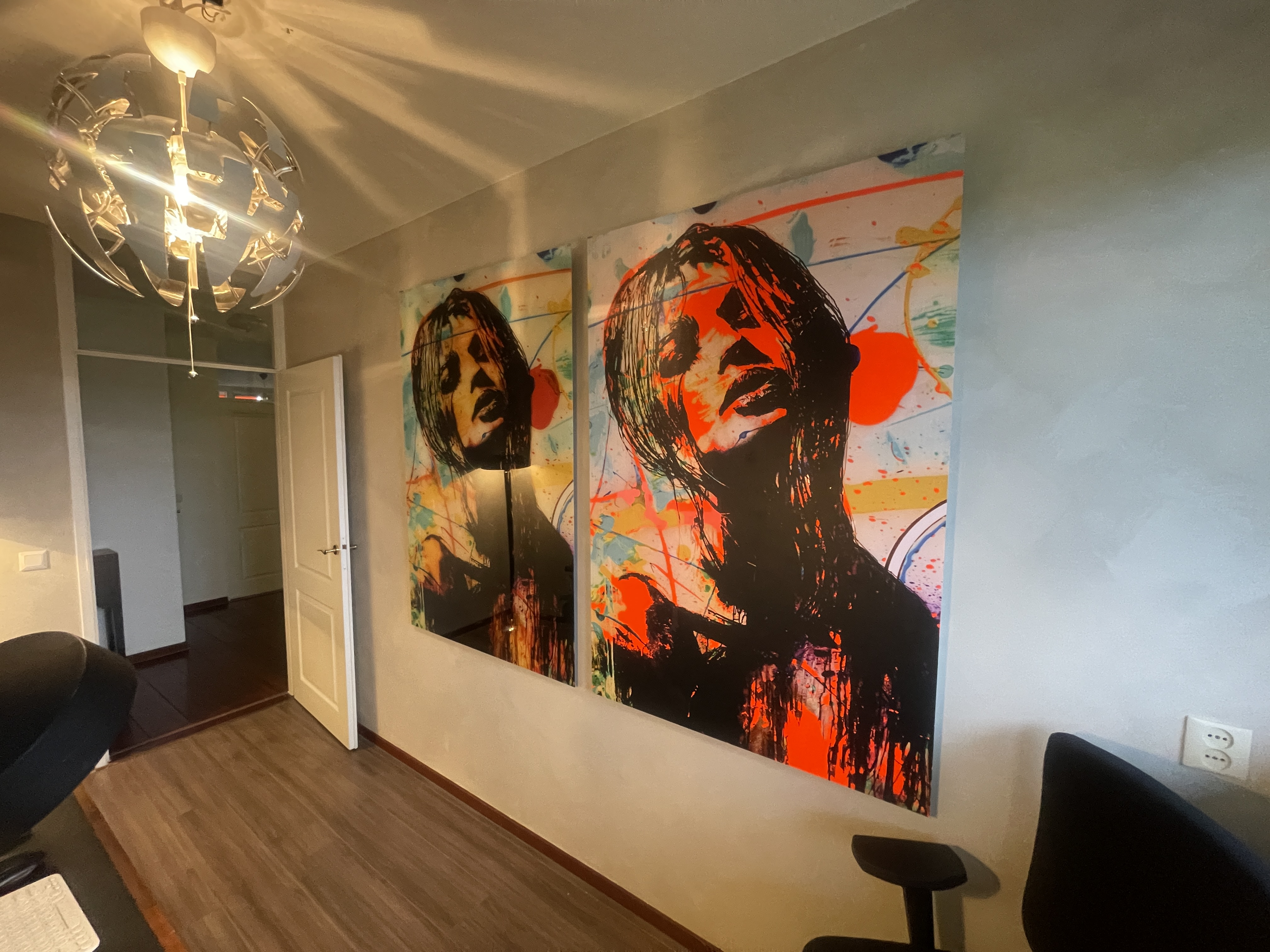 Faith decided to do up her office so we rented a van and drove out to pick up a desk from someone on Marketplace. When we got there he had three pieces of art he had apparently bought for $1400 each, along with certs of authenticity. They were digital prints on steel/glass - we know nothing about art but we really liked them. He did us a deal of $500 for all three.